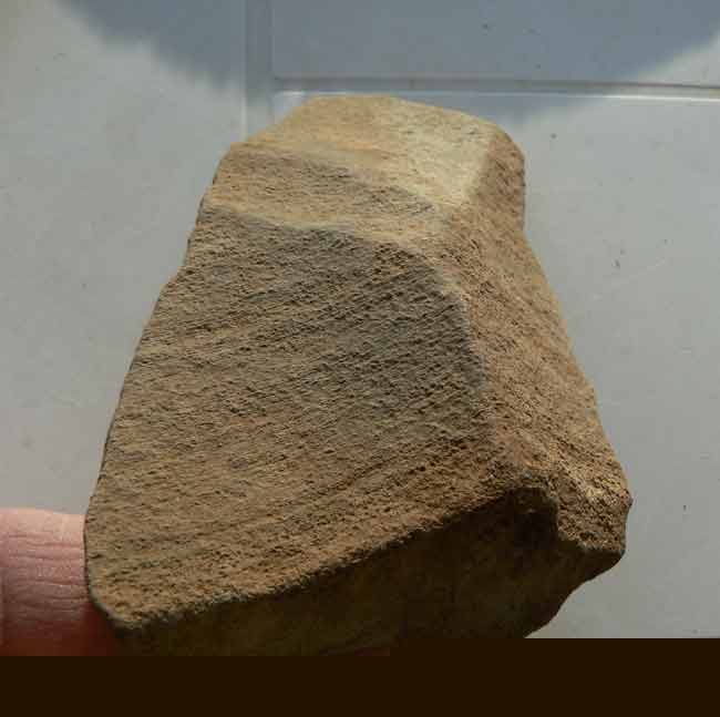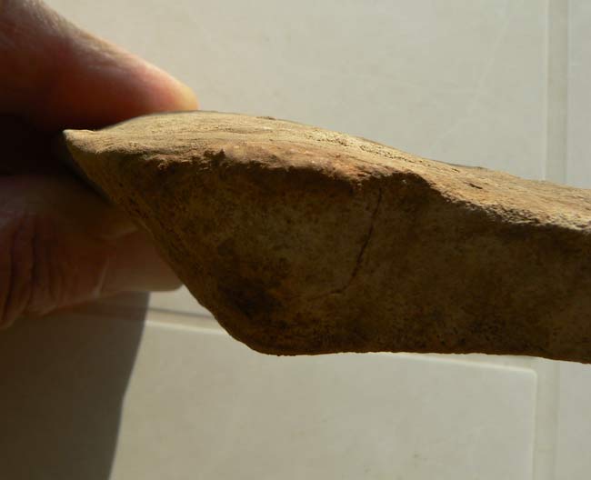 Là , je pense que c'est un eolithe. Définition du larousse-point-fr en ligne : 'Fragment de pierre, antérieur au quaternaire, façonné par l'action d'agents naturels et qui peut ressembler à des pierres travaillées par l'homme.'