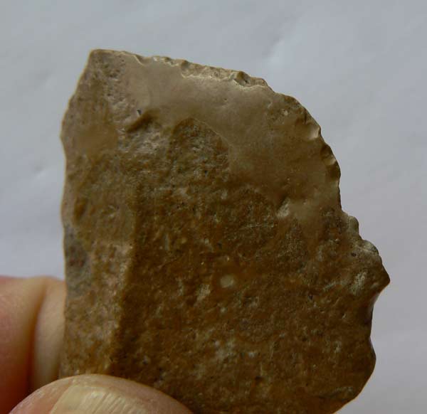 Trouvé ce petit silex d'environ 5 cms de large que je pense être un éclat aménagé en racloir. Merci pour vos avis.