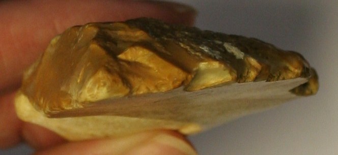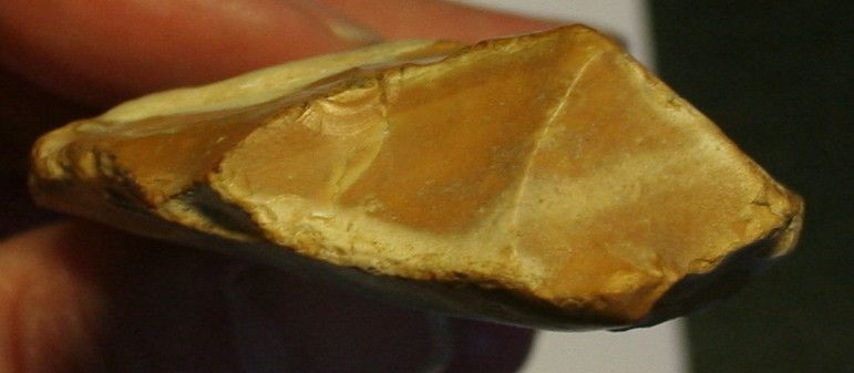 Bon c'est pas de chance, c'est à cet endroit que devrait se situer le bulbe de percution... Néanmoins, on peut encore deviner autour l'arrondis du bulbe