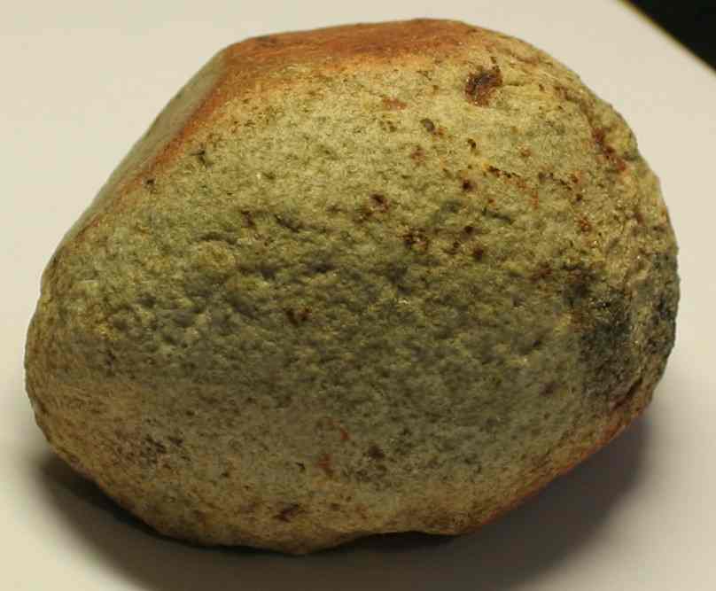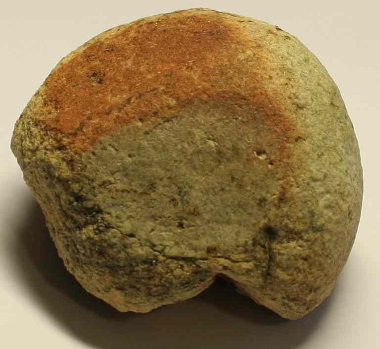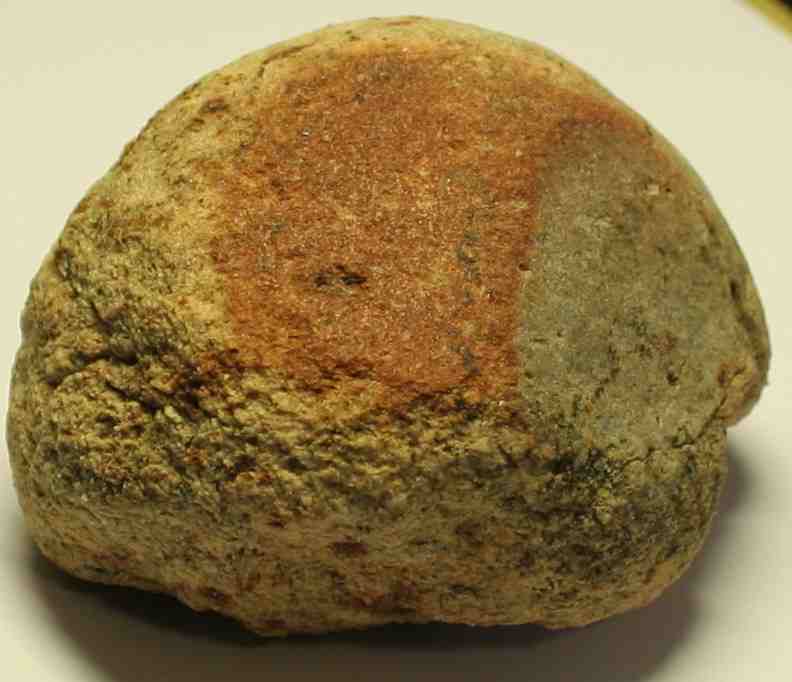 J'ai trouvé il y a qq temps une pierre granuleuse. Elle présente une forme arrondie apparemment bouchardée et deux faces polies (le reste d'une autre face est vaguement visible à l'endroit où la pierre a cassé).