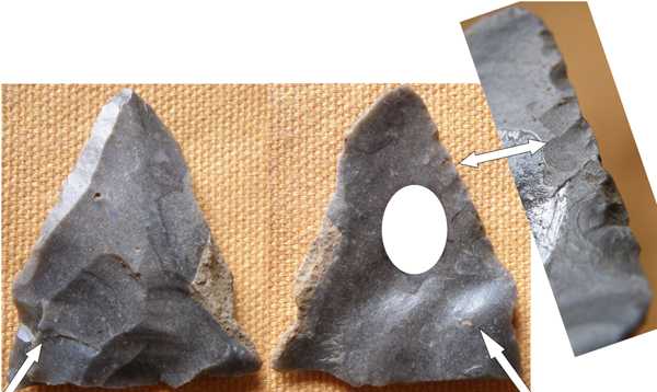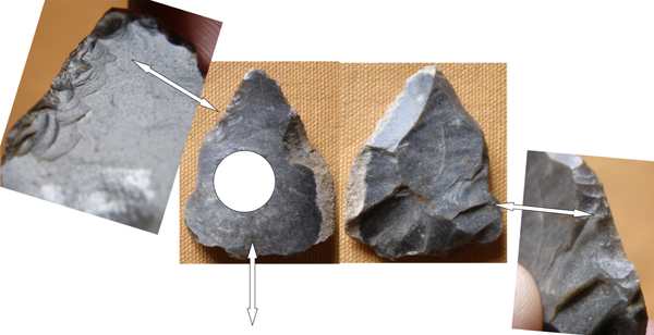 Le premier trĂ©s effilĂ© mesure 3,8cm /0,4cm(pour l'Ă©paisseur et porte sur l un des cotĂ© de fines retouches .j ai materialisĂ© par une flĂȘche l axe de l Ă©clat .Sa base presente une forme concavitĂ© formĂ©e par un nĂ©gatif ,et la convexitĂ© due au bulbe de percussion ,,,,,l objet ressemble a une pointe pourriez vous m aider pour cette identification??