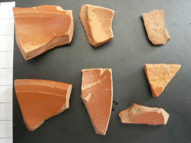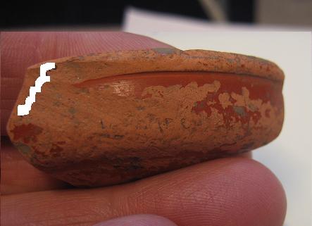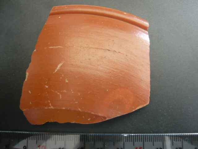 Ce qui est curieux ici c'est l'absence d'engobe sur la partie intĂ©rieure. Peut-ĂȘtre faut-il ici y voir des productions de l'Est.