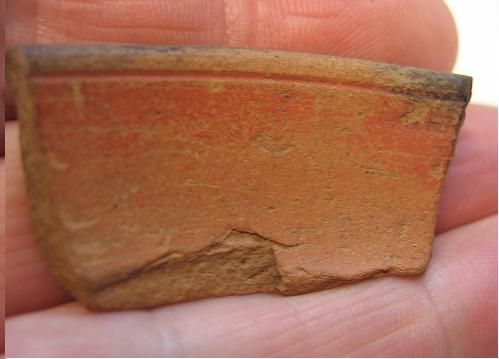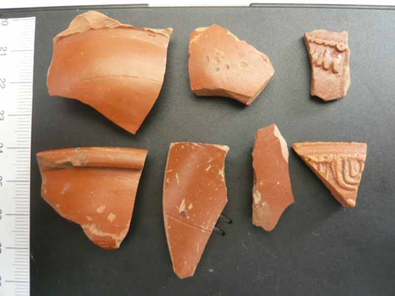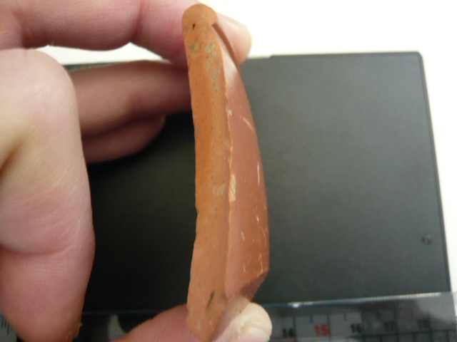 - 1 tesson de sigillée (coupe sur pied à l'origine) issue d'un terrain agricole labouré de longue date, le terrain est acide car du Morbihan,