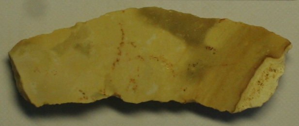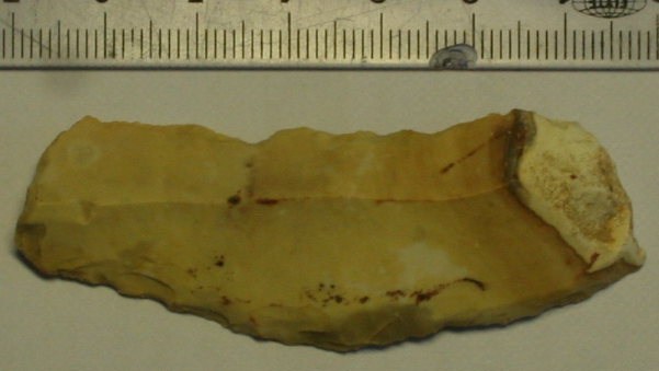 arraché aux griffes d'une horde de tiques en furie dans un contexte 'a priori' paleo moyen cette lame de 7cm long (2.5cm de large max).