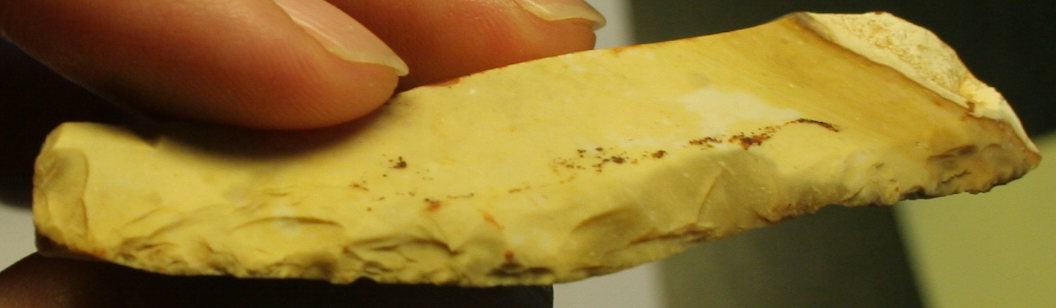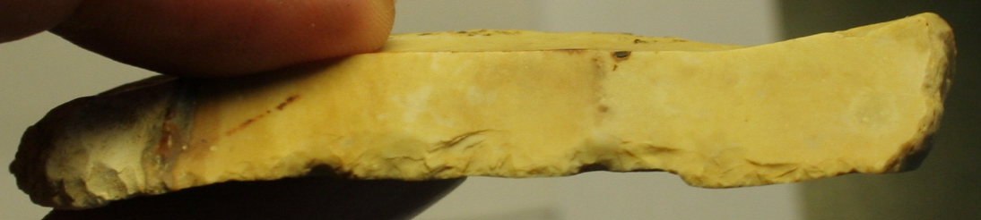 Les traces d'usure sur la lame sont tres profonde (donc je me demande si il ne s'agirait de qqchose qui a été utilisé plus en tant que racloir que couteau...)