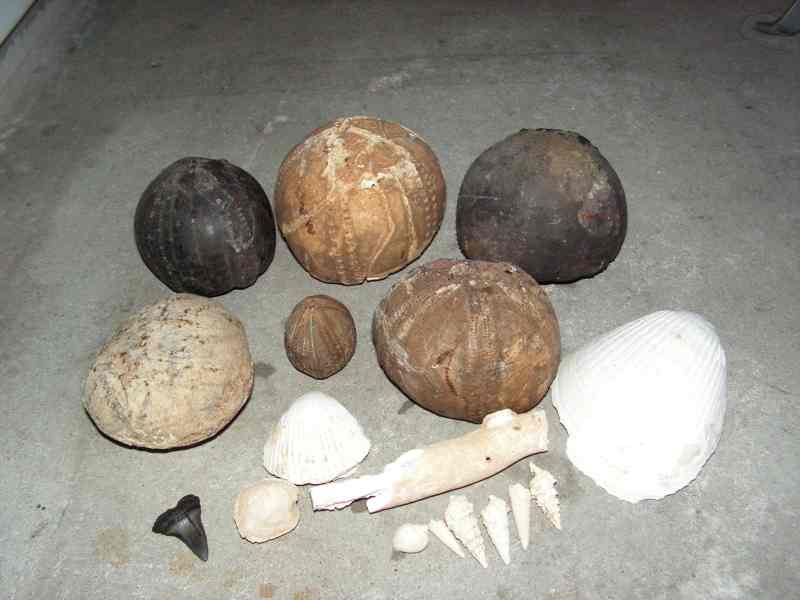 Les oursins en silex sont des Echinocorys du Crétacé supérieur (Sénonien), sauf le plus petit qui semble être un Conulus (Turonien).