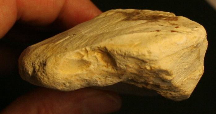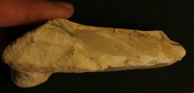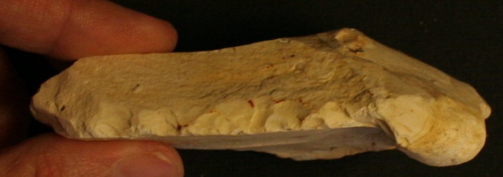 Il y a un truc assez bizarre sur l'autre face un espèce de bourrelet et je n'arrive pas trop à expliquer cela (peut-être une épaisseur de silex a été enlevée ?).