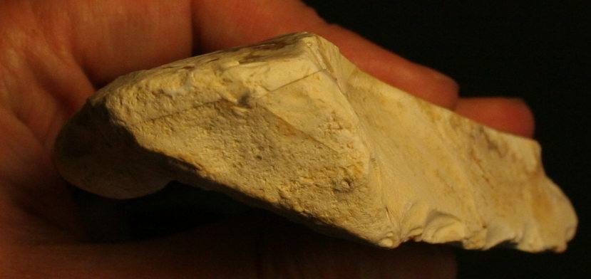 Pour le cliché pris dans l'axe de la pointe, en fait il y a un creux, on dirait aussi qu'il y a de vagues retouches ou un travail à cet endroit (difficile à dire...).