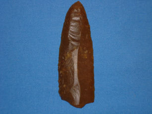 m'a tout l'air d'etre du silex du grand pressigny,je dirais comme ça d'apres les photos extremité de poignard,mais d'autres photos sont nécessaires notament de l'autre face et des deux bords laterales