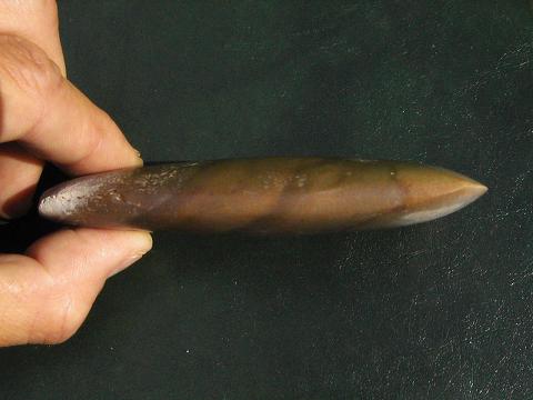 Je l’ai découverte mercredi de cette semaine et c’est sans nul doute sa pureté qui m’a invité à franchir le pas de l’inscription sur ce forum pour ainsi ne pas garder égoïstement l’émotion qu’elle m’a procuré. Je l’ai rêvée donc pendant des années cette hache polie : mythique symbole de la fin de la préhistoire. J’ai parcouru par delà les saisons des centaines (peut être même des milliers) de kilomètres de labours dans le froid, la chaleur, sous les orages, le soleil, le vent et la pluie. Je me suis fait attaquer par des bêtes féroces (en fait ce n’était que des insectes puisque qu’il n’y a plus d’ours ni de loups), je suis tombé de talus, me suis tordu les chevilles et puis je l’ai trouvée. Mais jamais je n’aurai pensé qu’elle aurait cette couleur qui donne envie de la croquer, cette douceur quand on la touche, un tranchant brillant comme un miroir et cette impression de robustesse.