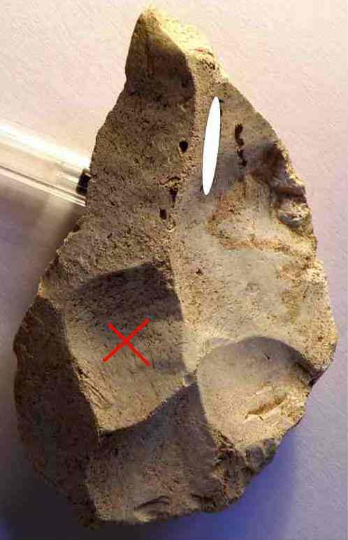 mathieu heidelbergensis, je pense que le gel est passé par là , en effet, je me demande comment l'éclat ou il y a la croix a pu etre créé sinon par le gel, pas de point d'impact, les autres enlèvements également, je ne distingue pas de chaine opératoire