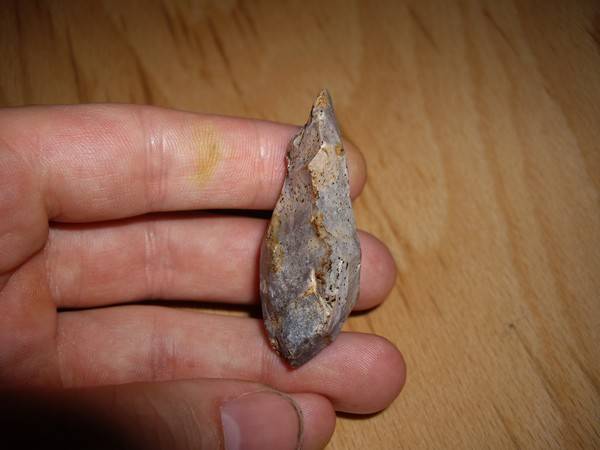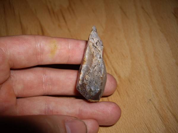 Dernière petite trouvaille, il s'agit d'un mini biface de 5 cm de long. Taille bifaciale bien évidente.
