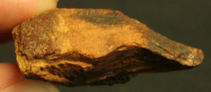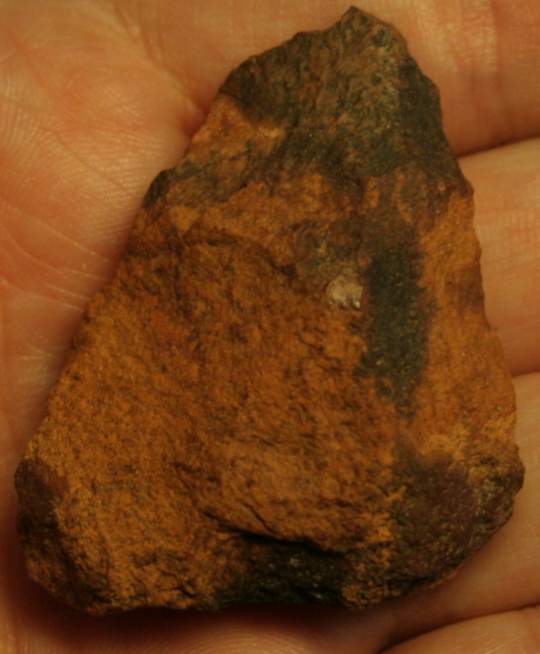 Tout d'abord au niveau de la matière, je ne sais pas trop ce que c'est; la couleur est rouge- rouge-brun granuleux (les photos le font un peu tirer sur le jaune, l'une des faces à un genre de patine, l'autre pas...