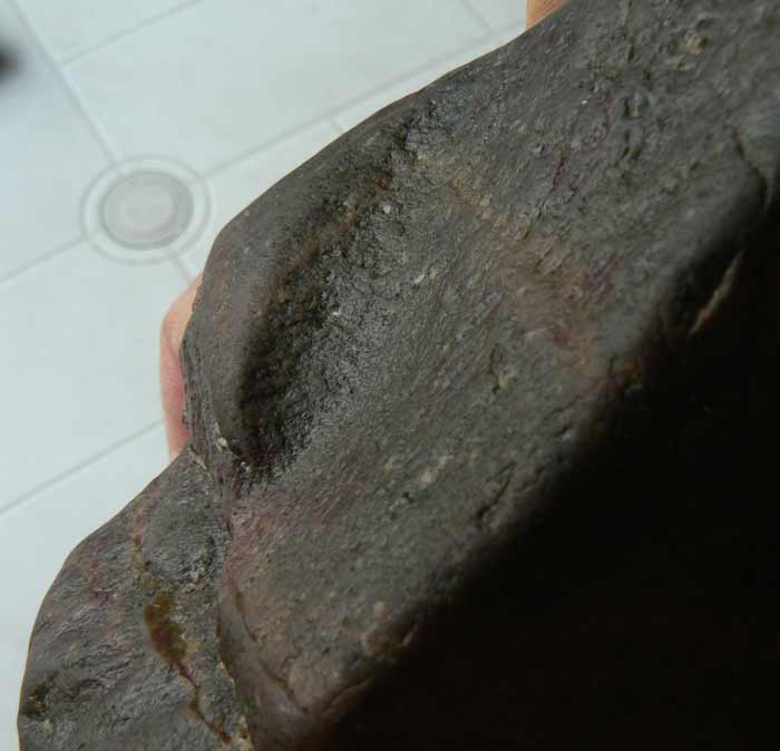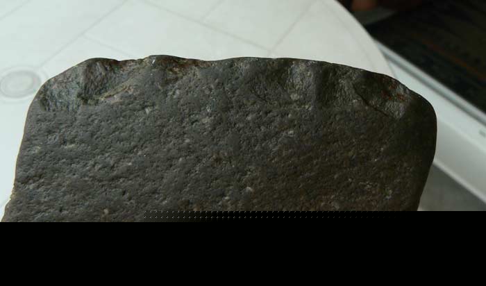 Je me permet un petit up, avant qu'il ne disparaisse en page deux, je pense fortement que c'est un chopper, mais sans vos avis pas d'identification. Si cet objet servait à équarir entre autre, son poids (3,1 kg) devait jouer en sa faveur, à l'instar d'une grosse varlope de menuisier, le poids permet de mieux raboter, sa préhension est totalement ergonomique, l'enlèvement en R2 et R11est vraiment adapté au confort de la paume et sur l'autre côté il y a ce petit décrochement qui permet aux doigts de ne pas glisser en R3-R8, les enlèvements émoussés bien sur sont quand même visible en R4-R5, la ligne du tranchant en R 13 permet de voir qu'il y a bien un enlèvement positif- négatif,et aucun enlèvement sur le reste des aerêtes de l'objet, tout ceci n'est que mon humble avis. Dites moi au moins si c'est bien de la dolérite. Merci pour vos commentaires. Marc si tu passe par là n'hésite pas a donner ton avis. Cordialement.