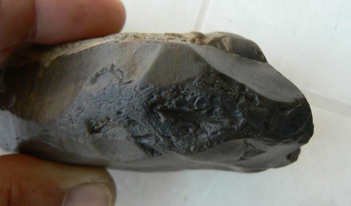(Tiens au fait la zone abîmée,c'est vrai qu'elle semble présenter le même genre de stigmates que les percuteurs...)