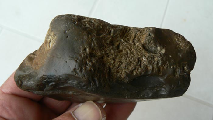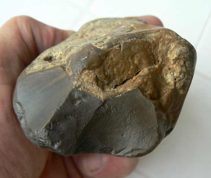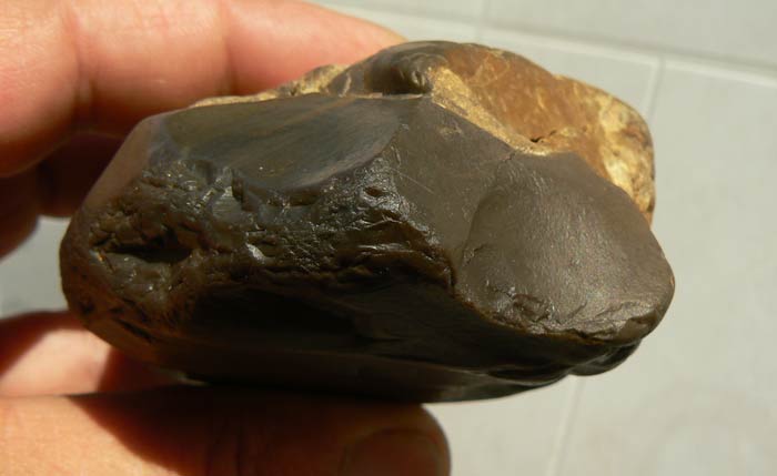 chopping tool qui a fini sa carrière en percuteur, bien vu, et pas mal la patine