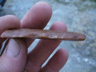 Je confirme ce que je disais, il doit s'agir d'un morceau de lame de poignard neo-final/chalco (sans doute ré-utilisée d'après les marques que l'on voit sur la photo en R5)
