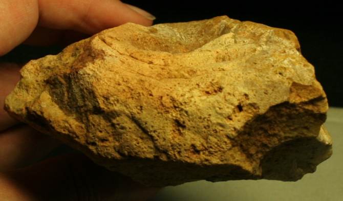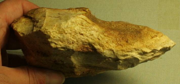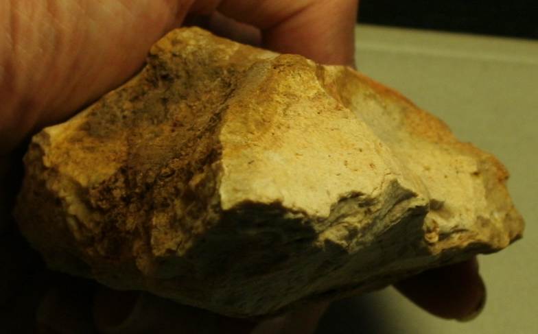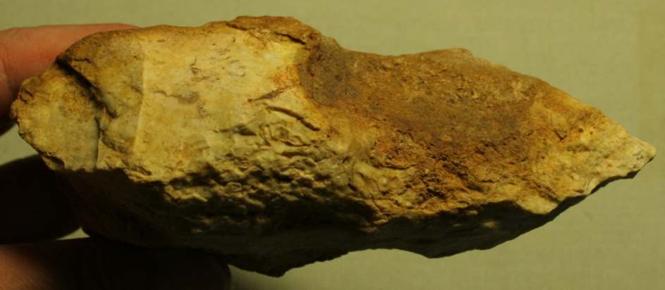 Le coté droit (au dessus de la retouche proche du talon) présente aussi des traces de percussion (bizarre car pas pratique du tout... aussi bien du point de vue de la morphologie de l'objet que de la prise en main... ou alors en l'utilisant comme marteau).