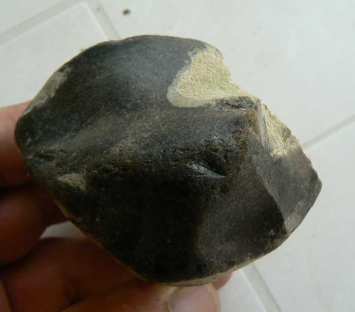 Toujours mon côté Rahan, j'ai ramassé ce silex car j'y ai vu des enlèvements et ce trou et je me suis dit pourquoi le gars se serait embêté à commencer la taille d'un silex de piètre qualité vu le trou, mais après réflexion et le passage d'un cordelette dans le trou, j'ai pensé qu'il aurait pu servir de poids ou contre-poids soit pour un métier à tisser primitif, un lestage de filet de pêche ou toute autre utilisation, les enlèvement le rende parfaitement équilibré et homogène, quand pensez-vous ? En a-t-on déja trouvé ? Merci pour vos commentaires.