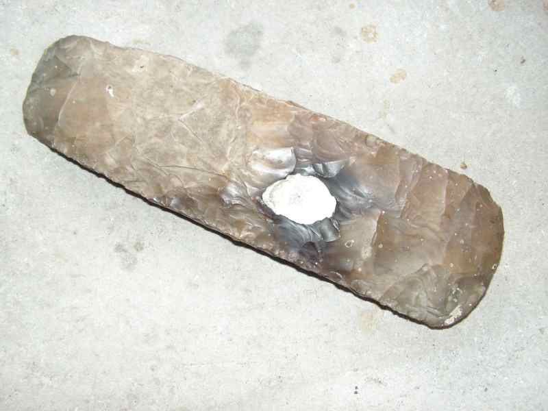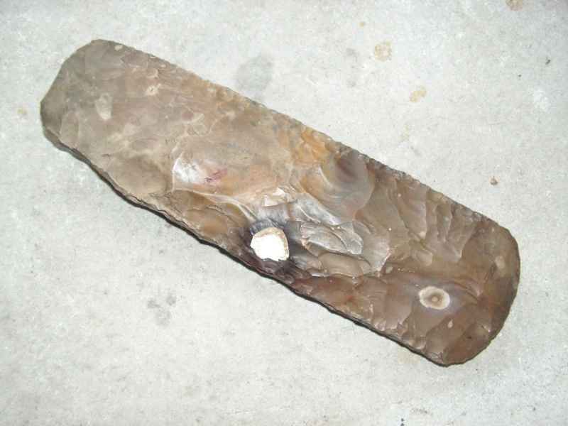 On dirait une hache du type des Dolmen du Danemark ou Suède ; je ne sais pas ce que vous en pensez ? Ou bien une autre possibilité vu que les anciens proprios étaient fans des cowboys et indiens est ce que les indiens faisaient de telles haches ?