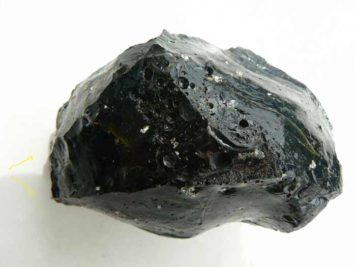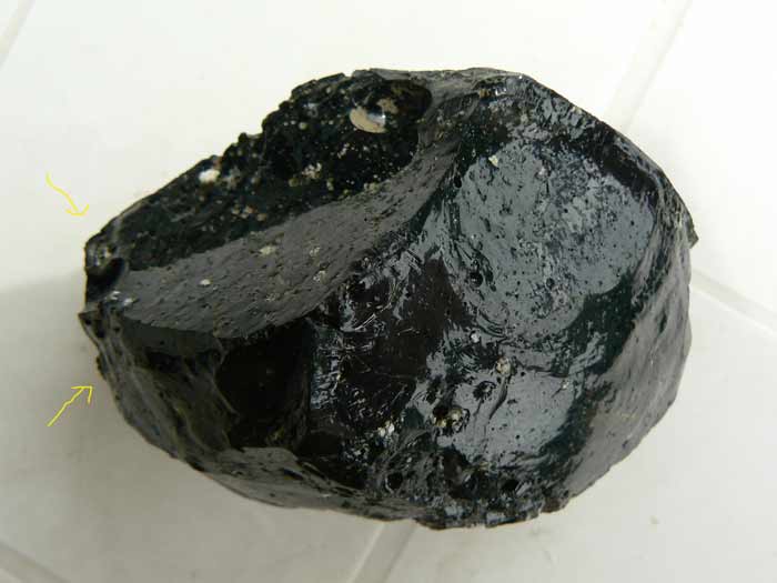 Philippe, j'ai été voir sur le net, est trouvé des images et des explications pour les laitiers de couleurs bleu et verte mais pas pour le noir par contre pour l'obsidienne, j'en ai vu de la sorte qu'ils appellent 'obsidienne flocons de neige' elle ressemble étrangement à ce morceau avec ces incrustations de grains de quartz et dise que l'obsidienne raye le verre ce qui est le cas pour ce morceau, le laitier peut-il rayer le verre ? Effectivement les principaux gisements européens sont dans des iles italiennes et grecques et que le commerce de cette pierre pour faire des outils s'étendait principalement dans le sud de la France mais le plateau Armoricain était volcanique il y a des millions d'années.