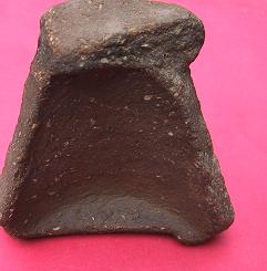 voici un autre morceau de poterie trouvée dans le 37 de couleur marron foncé ( hauteur 75 mm ) cette poterie laisse apparaitre des petits graviers blancs