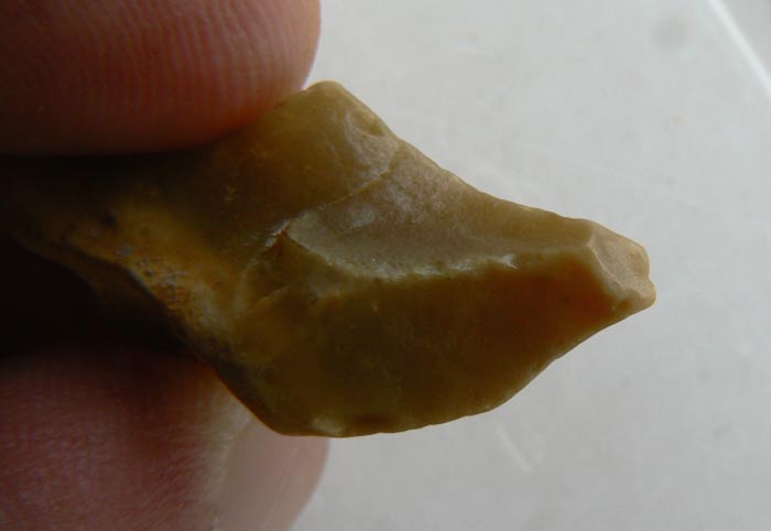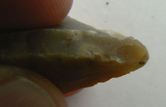 à cause du cortex au niveau de la pointe et des enlèvements ''au carré'' au niveau du corps de la pièce (de plus c'est pas possible d'utiliser ce silex sans s'entailler la main...)