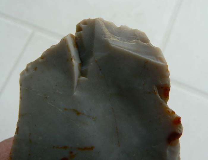 et ça me paraît pas logique du tout, de faire des enlèvements à cet endroit une fois que le bout de silex est parti... donc je doute que ce soit anthropique.