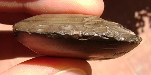 L'idée des retouche par éclat sur le tranchant poli est intéressante ! C'est effectivement ce qui a dû se produire car les éclats en question semblent anciens.