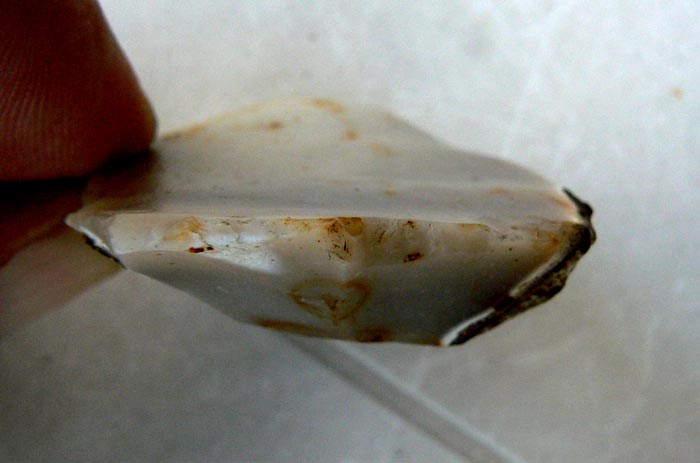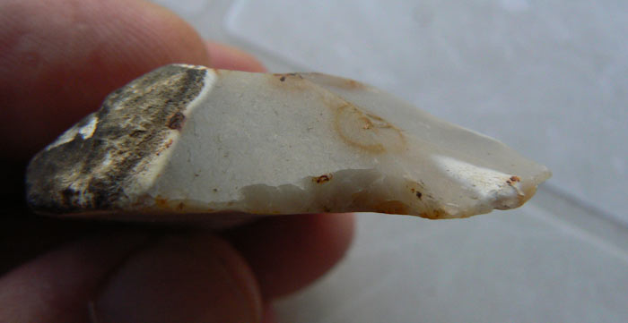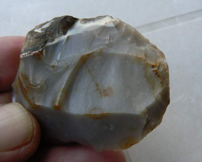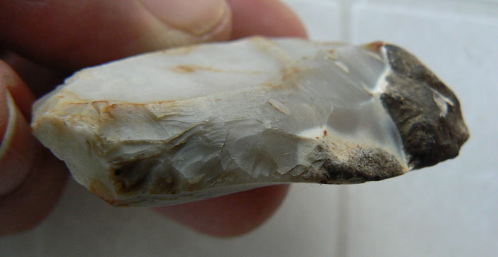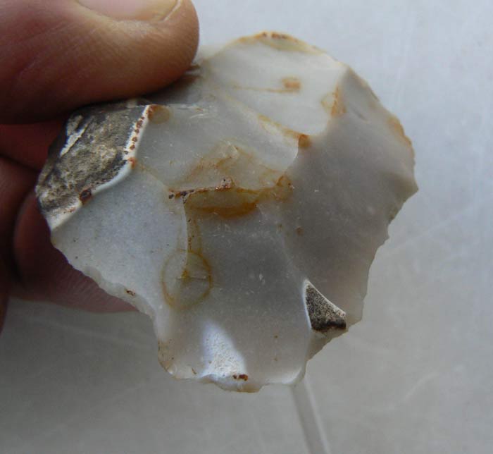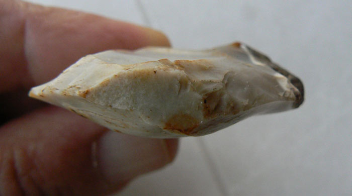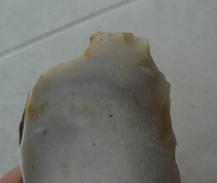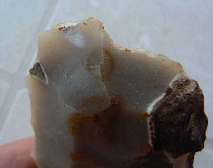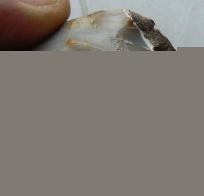 Comme promis james et pour faire plaisir à neodom, je poste ce silex qui me semble être un double racloir ( encore !) disons un petit, genre sur museau et un autre normal; il y a pas mal de photos mais des esquilles et des enlèvements aussi fin, ça vaut bien quelques photos en trop. J'ai commencer par le recto-verso et profils et le reste des agrandissements. Je compte sur vous pour me dire si c'est un OO ou un outil classifiable et éventuellement son époque. Merci pour vos commentaires.