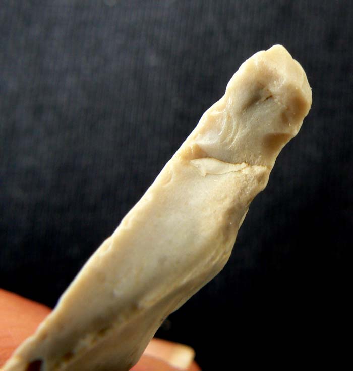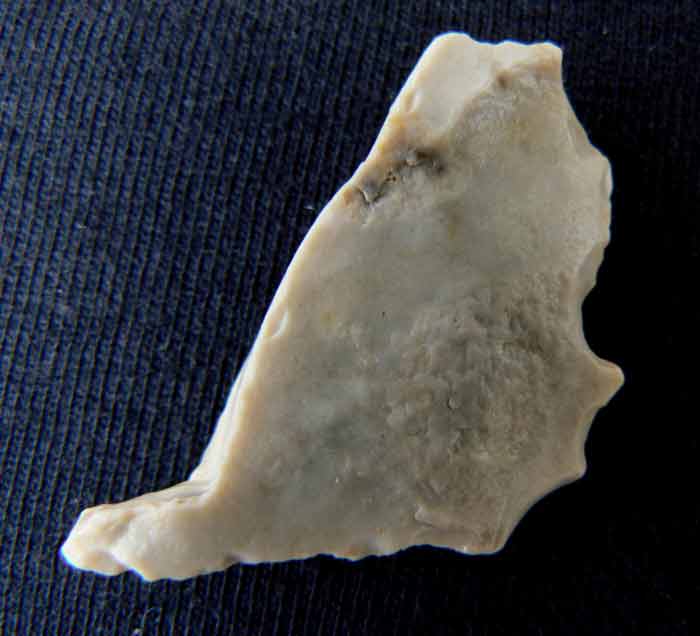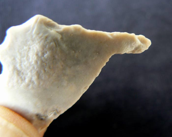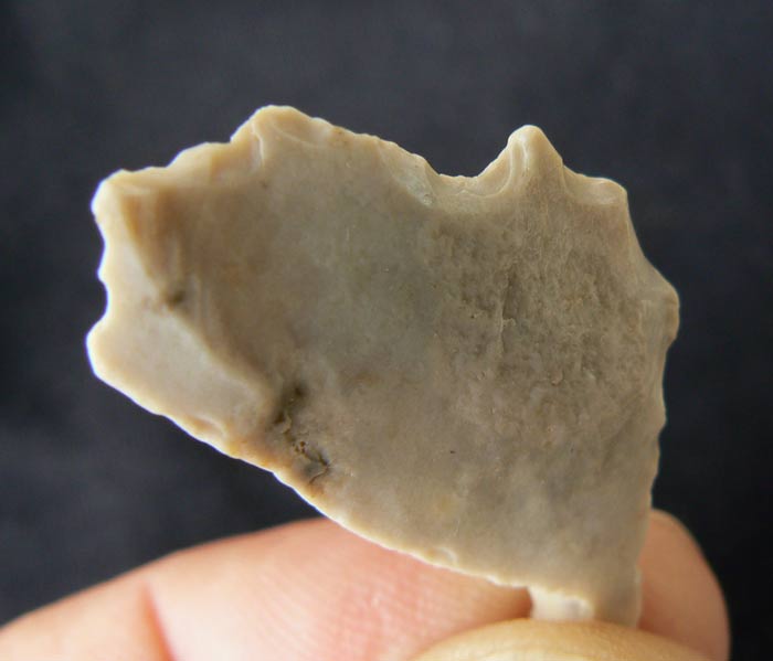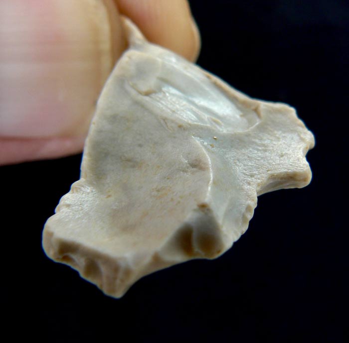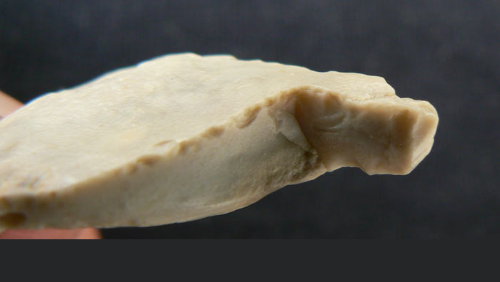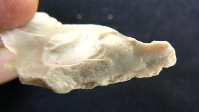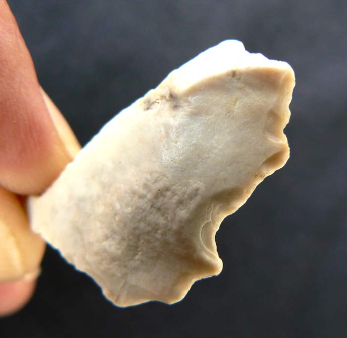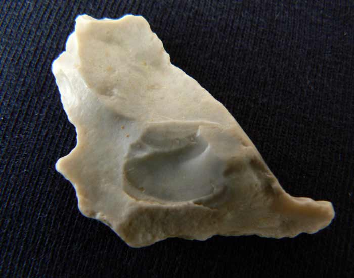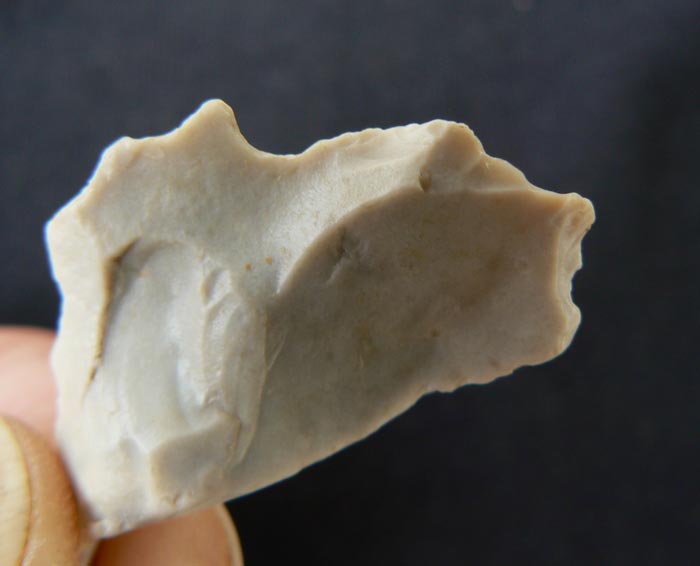 Ce silex aussi fait parti du lot d'Ivry, je pense à un petit racloir/gratoir, je ne sais pas ce qui est le mieux adapté comme définition,aménagé sur un éclat, en R1,R2 il ressemble à un papillon, la pointe qui aide à le tenir me fait penser à un perçoir, mais elle me fait aussi penser à un mini gratouilleur, car de chaque coté on y voit deux esquilles. Merci pour vos avis et commentaires. Cordialement.