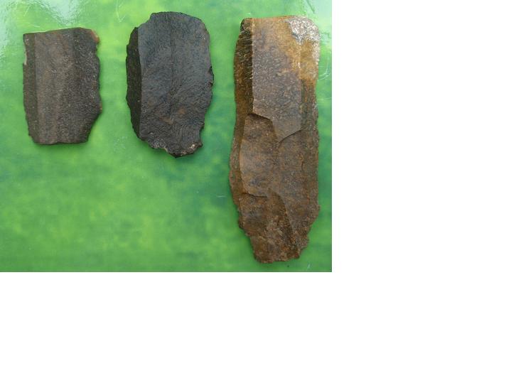 Pour celle de droite je pense qu'il peut s'agir d'une lamelle (donc d'origine anthropique) par contre difficile de dire si il s'agit d'un déchet de taille ou d'un outil sur cette photo.