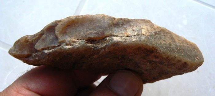 Merci pour cette identification, je le trouvais un peu clair pour du silex mais c'est vrai qu'il ressemble à du silex blond, certainement du silex lagunaire comme celui de Salinelles ( pas sur de l'orthographe ) quartier général de HOUAT. Cordialement.