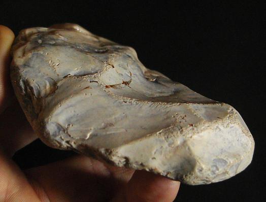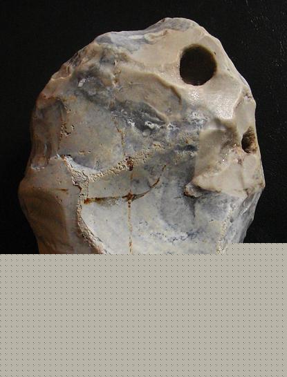 on dirait un biface utilisé (R4) comme outil de boucherie pour briser les os.Vraisemblablement tout début nèo .