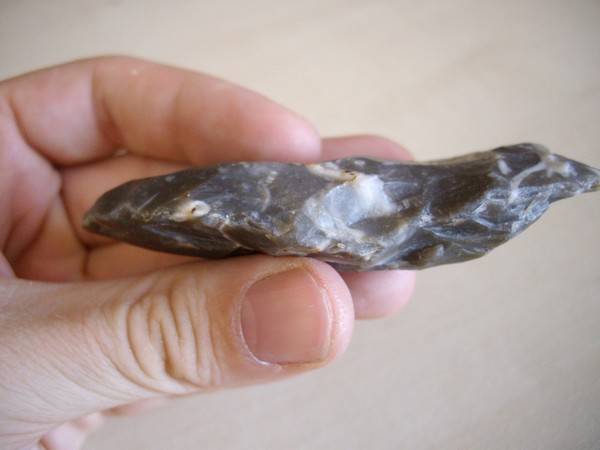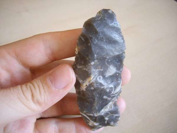 La taille bifaciale maladroite me fait penser à une préparation, mais de quoi , une pointe, un peu grand, sinon je ne vois pas de quoi, un perçoir ????