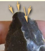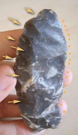 Il est bien retouché à gauche, pas de soucie, à droite en fait de l'autre côté des esquilles il y a les retouches.