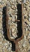 Voici un axe en fer forgé pour montant de porte en bois à l'ancienne qui s'intégre dans la crapaudine, 'dans son jus', récupéré dans un remblais
