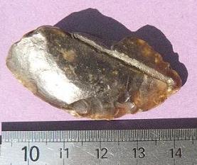 Cet outil en silex sur éclat présente une belle patine et une rainure rectiligne bien marquée d'une profondeur de 1 à 2 mm.