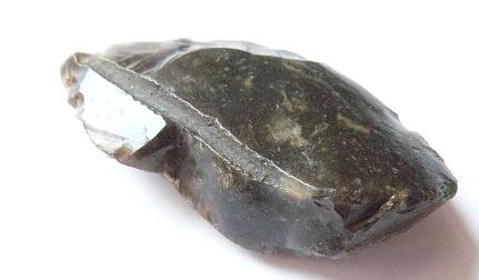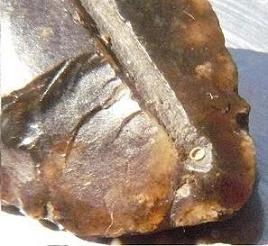 Rainure naturelle ou fabriquée pour la taille de l'outil dont la pointe présente de belle retouches fines faites à partir de la rainure.
