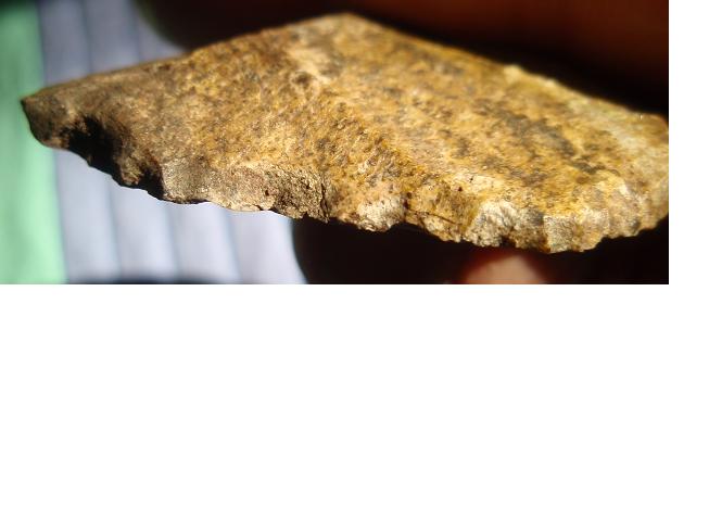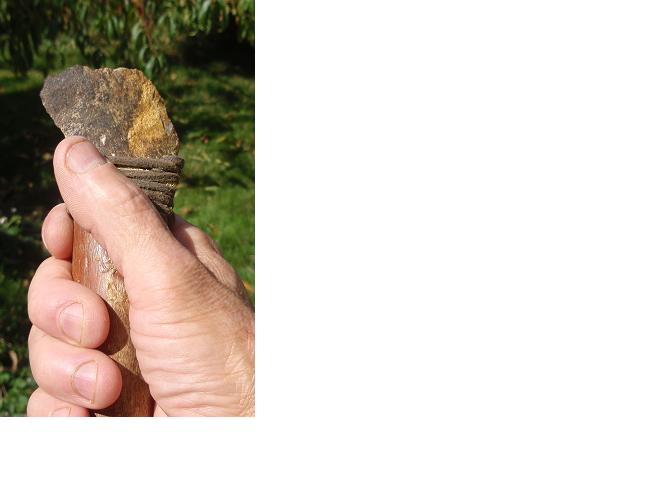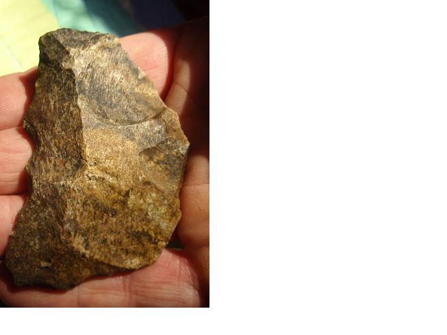 Vu l'endroi ou sont les retouches R2, on peu penser qu'il s'agit d'un dos abattu, et donc que l'outil aurait pu être du coup un couteau denticulé à dos abattu (hummm ... ç'est repertorié ça ?). Et peut être même emmanché (oui, là , je brode ...)