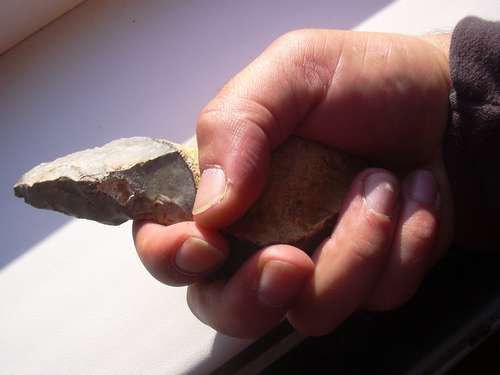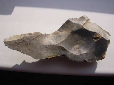 Non, non, pas retour aux orties! Ce silex biscornu a certainement pu servir de couteau. Bonne prise, économie de manche, allez, roulez jeunesse !