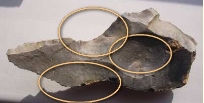 Ce qui me fait dire que c'est un éclat naturel, ce sont ces enlèvements sphériques qui semblent bien signer des éclats de gel.