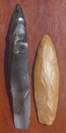 Ci dessous un silex miel du Pressigny et un silex noir de Seine Maritime...