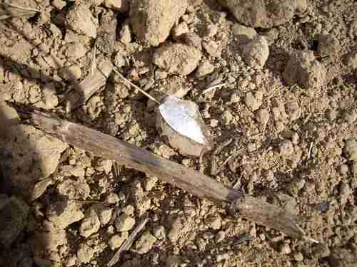 Cette année, j'ai juste vu au vol 2 ou 3 éclats, cette pointe et cette lame qui émergeaient de la poussière de sécheresse.