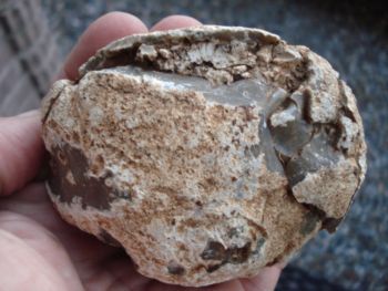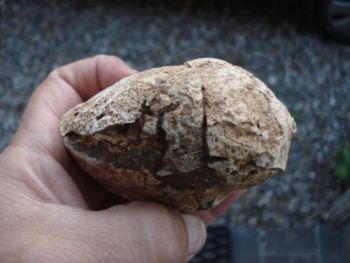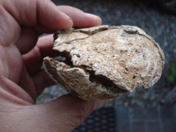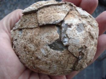 Je pense à un rognon de silex éclaté, un galet de silex quoi et 10 cms cela me parait léger pour un oeuf de dinosaure. Cordialement.
