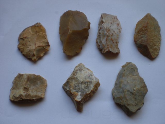 alors si vous permetté je vous met 2 fotos avec mes bout de silex que j'ai, si vous pouves me dire si j'en a de taillé dans le lot, je pourai mieu observer les traces laissé par la taille.