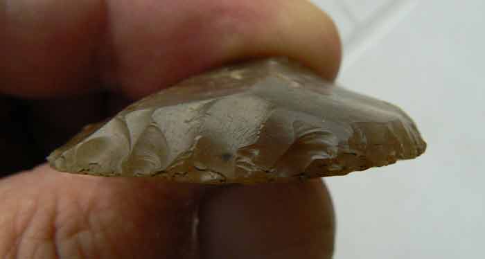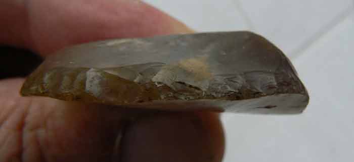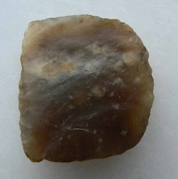 Pour les yeux comme il disent dans le métal, gigi m'en avait identifier une en silex blond comme pierre de pistolet à talon de napoléon 1er, elle était neuve comme celle-ci et mesurait 30mm par 25 mm celle-ci mesure 35 mm par 37 mm et est en silex brun, est-ce une pierre à fusil ? Merci pour vos avis. Cordialement.