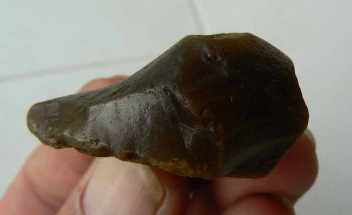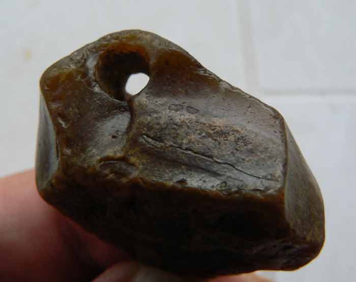 Trouvé ce silex brun que je pense être un pendeloque de silex, il devait y avoir certainement un trou naturel sur la tranche, l'individu a simplement tarauder ce qui ressemble à un bulbe mais qui ne l'ai pas,