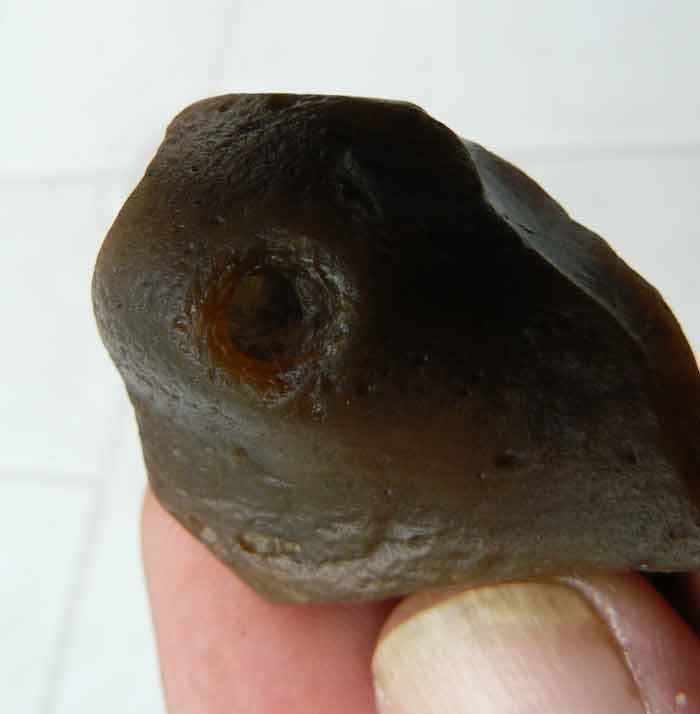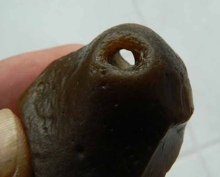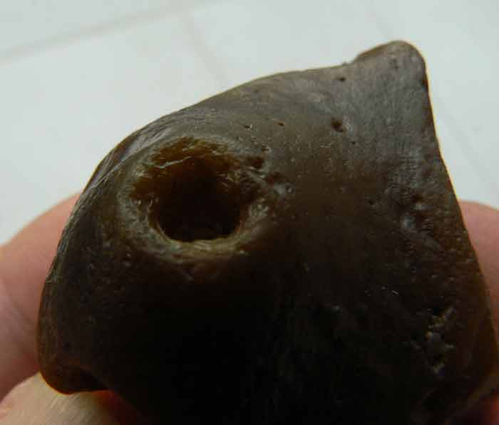 Pour ma part jamais trouvé, mais les deux trous naturesl ont été aménagés, peut-être plus par percussion ( indirecte ) que taraudage