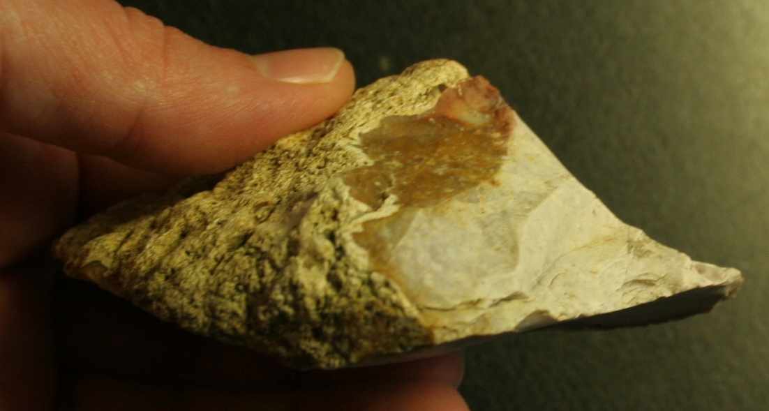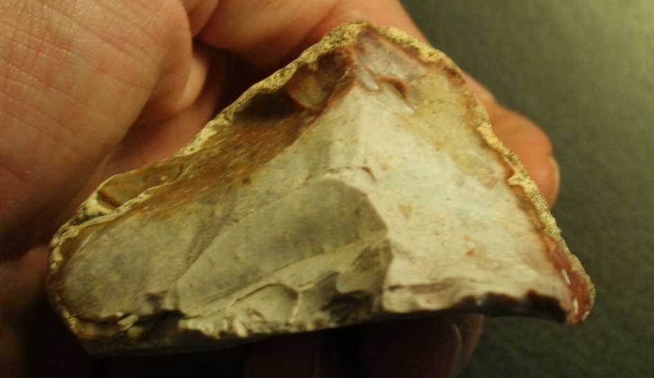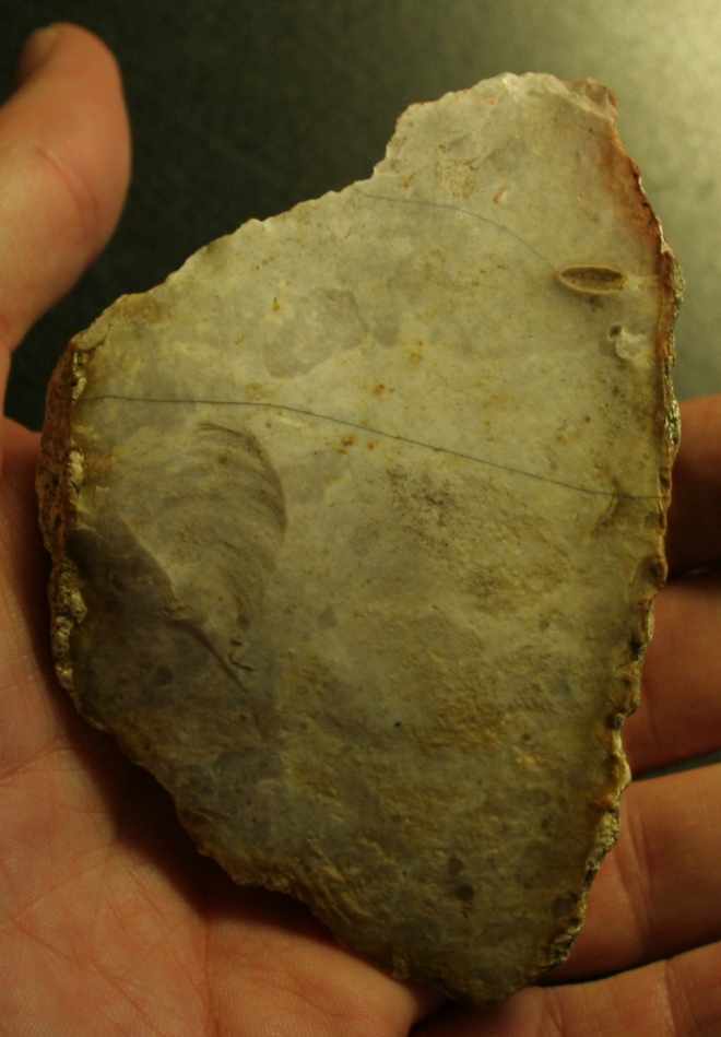 Pour l'outil opportuniste oui et non (dans le sens ou c'est la mode dans ce coin là ). Il me semble qu'il s'agit d'un éclat produit dans la premiere phase de mise en forme d'un nucleus et qui se retrouve tout de même utilisé... Il travaillait à l'économie dans le coin, ce qui est assez bizarre car du silex il y en a partout...